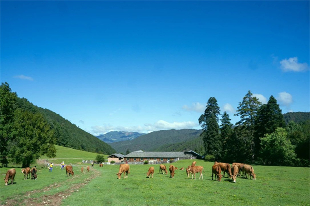 開(kāi)闊的牧場(chǎng)。地毯般舒適的草場(chǎng),點(diǎn)綴著牛兒和馬兒。草場(chǎng)的盡頭,是一片高大的松林像森林的大門(mén),走進(jìn)去,是忽然